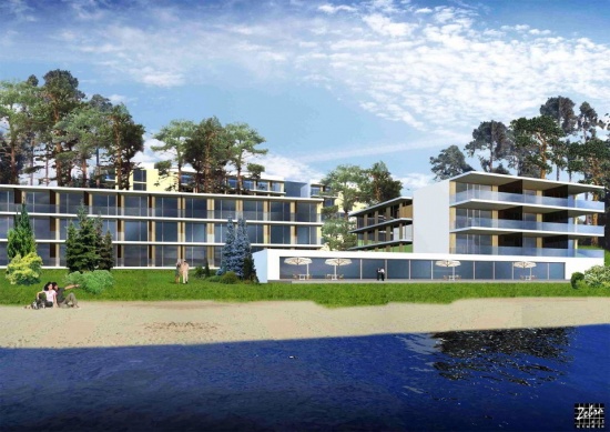 Teren działki od wschodu sąsiaduje z Zalewem Zegrzyńskim, od północy z zespołem konferencyjno-hotelowym, od południa z terenem Yacht Clubu oraz realizowanym obecnie zespołem zabudowy jednorodzinnej i letniskowej. Od zachodu granicę stanowi ul. Wyzwolenia, za którą znajduje się rozproszona zabudowa mieszkaniowa jednorodzinna.